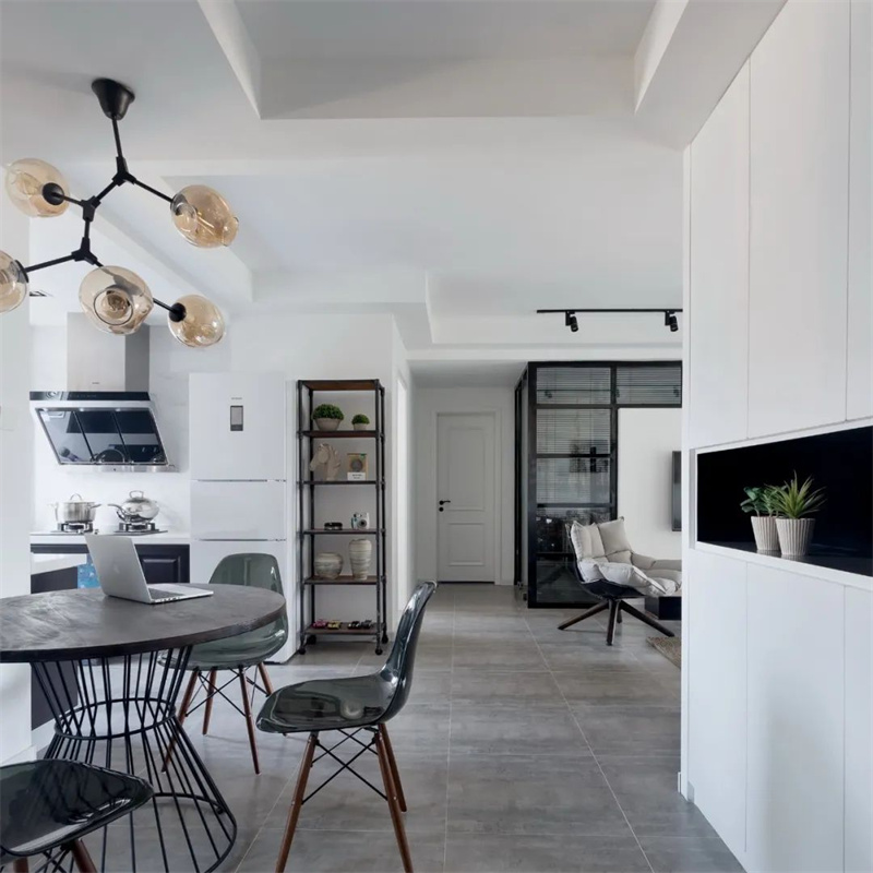 本案以灰色地磚和白色墻面為主要色調(diào),創(chuàng)造了一個清新、溫馨的居住空間。綠植、藤編等大自然的元素也被用來裝飾室內(nèi)空間,讓整個家更加貼近自然,呈現(xiàn)出一個治愈系之家的感覺。