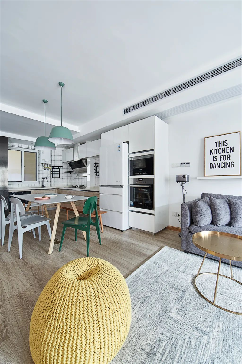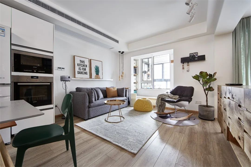 客廳是本案的亮點(diǎn),白色墻壁為空間提供了明亮的背景??蛷d的地板是原木色,賦予了房間自然的溫暖感。墻上裝飾著一些抽象的藝術(shù)畫作,為空間帶來些許藝術(shù)氛圍。整個(gè)客廳的設(shè)計(jì)強(qiáng)調(diào)了開放感和清晰的線條,讓人感到寬敞和時(shí)尚。